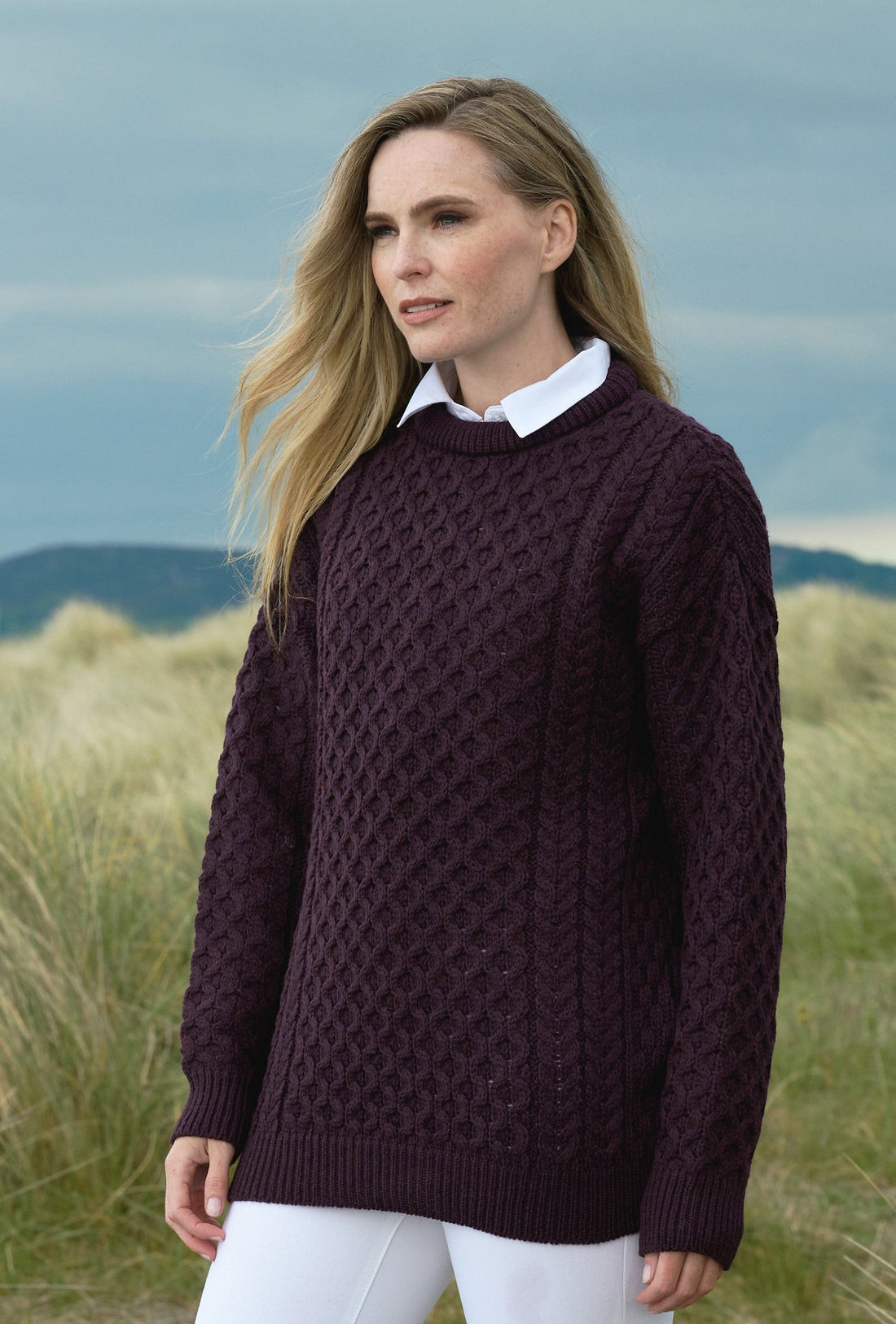 Damson Irish Aran Fisherman Knit Merino Wool Sweater