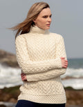 Aran Cable knit fisherman sweater made from 100% Super Soft Merino Wool
