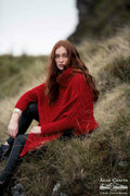 Aran Cable Knit Cape in Mallard Blue & Cherry Red