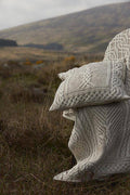 Our Fairy tree throw was inspired from the Irish folklore of the Fairy tree believed to be sacred ground for the “wee folk”. The two – tone plated design shows off the traditional aran patterns beautifully. The Fairy tree is designed on both ends of the throw and surrounded by traditional Aran cable stitches. A stand out piece of Irish heritage for your home and ideal present from Ireland.