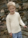 This Aran Fisherman Knit sweater for children has the traditional basket stitch. The basket stitch also known as the lattice stich represents the fishermans basket and the hopes for a good catch. .