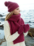 Irish Aran Wool Hat in a leaf and cable design. Made with 100% merino wool making it soft, warm and luxurious to wear.