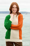 Classic Aran Stitch Sweater in the Irish Tricolor Flag.