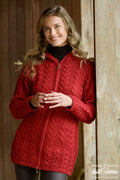 A contemporary take on the traditional Irish Aran cardigan. This three quarter length Aran knitted cardigan features a double zip with a celtic Irish zip feature making it obviously Irish.